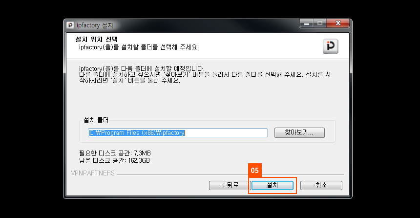 - 05 폴더의 위치를 확인하신 후 "설치"를 클릭해주세요.
