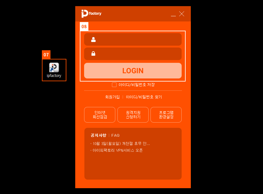 07 프로그램 설치를 마친 후 "아이피팩토리" 아이콘을 클릭해서 실행해주세요.